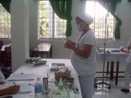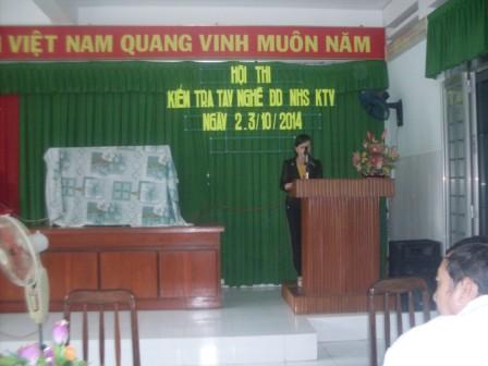 Song song đó, cũng nhằm nâng cao nhận thức, sự hiểu biết, tinh thần trách nhiệm của điều dưỡng viên, hộ sinh viên, kỹ thuật viên về các quy định, các quy trình kỹ thuật. Vừa qua, ngày 02-03/10/2014, Bệnh viện đã tổ chức Hội thi Kiểm tra tay nghề cho các Điều dưỡng, Nữ hộ sinh và kỹ thuật viên công tác dưới 5 năm. Thông qua các buổi kiểm tra giúp điều dưỡng viên, hộ sinh viên, KTV thực hiện tốt hơn nữa nhiệm vụ bảo vệ, chăm sóc và nâng cao sức khỏe nhân dân trong tình hình mới; Tạo không khí thi đua sôi nổi và nâng cao chất lượng chăm sóc người bệnh, có sự kiểm soát về chất lượng tay nghề điều dưỡng, hộ sinh viên và kỹ thuật viên. Hội thi được diễn ra 02 ngày với 2 nội dung thi: Lý thuyết và thực hành, các thí sinh đều phải trãi qua phần thi lý thuyết với 40 câu hỏi, thi thực hành phải chạy qua 4 trạm với 4 Qui trình kỹ thuật của Điều dưỡng.